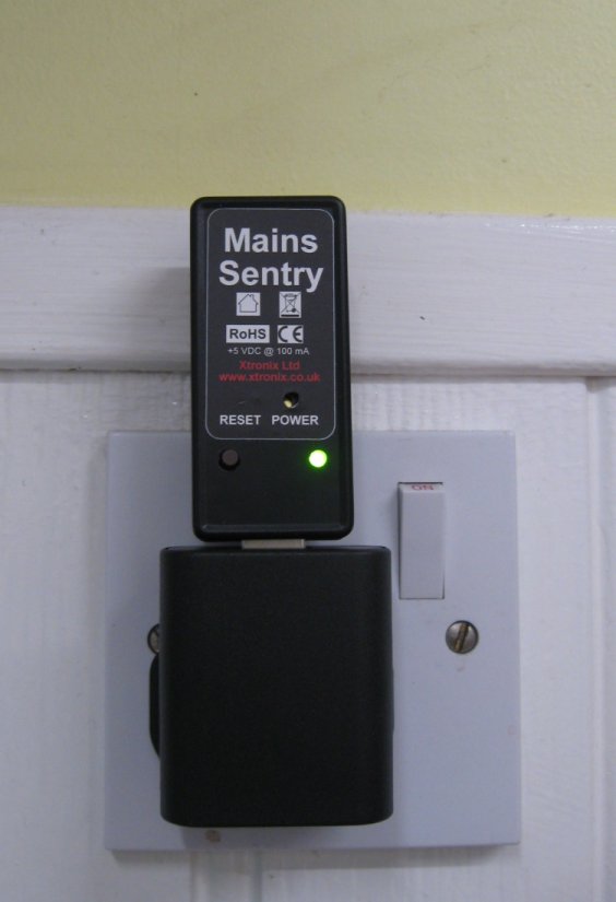The Mains Sentry is intended to alert users to a failure of the Mains Electricity supply. It can be plugged into a standard UK 13 Amp socket and will warn the user of a mains power supply failure by 'beeping'.